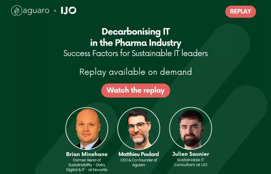 REPLAY – Decarbonising IT in the Pharma Industry: Success Factors for Sustainable IT Leaders With the growing importance of sustainability in IT strategies, understanding the environmental footprint of digital infrastructures has become a key challenge for organizations. During this webinar, experts from IJO and Aguaro share insights and practical approaches to better understand and manage […]