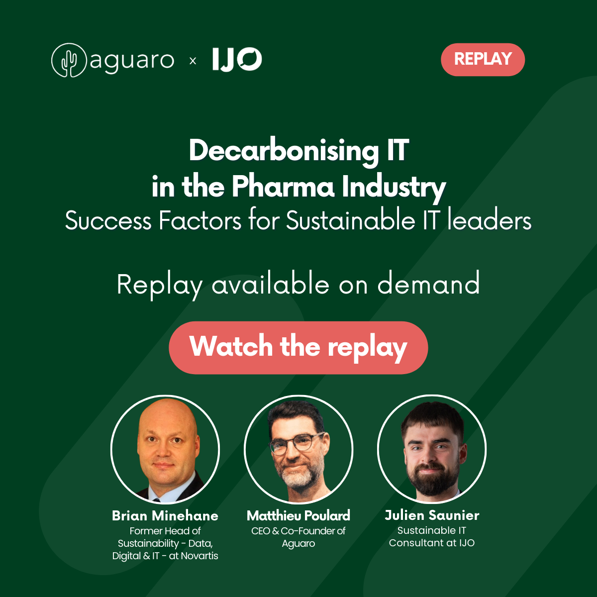 During this webinar, experts from IJO and Aguaro share insights and practical approaches to better understand and manage the environmental impact of IT in complex industries such as the pharmaceutical sector.